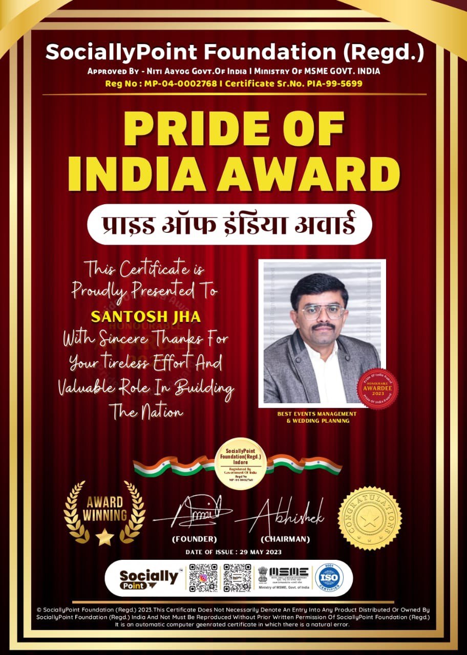 Receiving the Pride of India Award was a defining moment for our journey. This national recognition celebrates our team’s creativity, leadership, and passion for curating unforgettable experiences that reflect India’s vibrant spirit and culture.